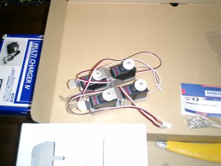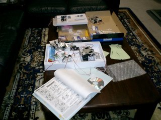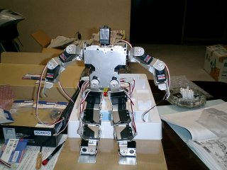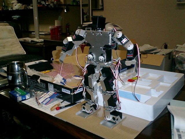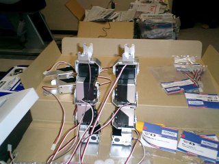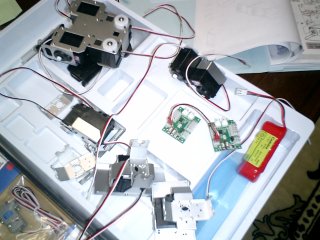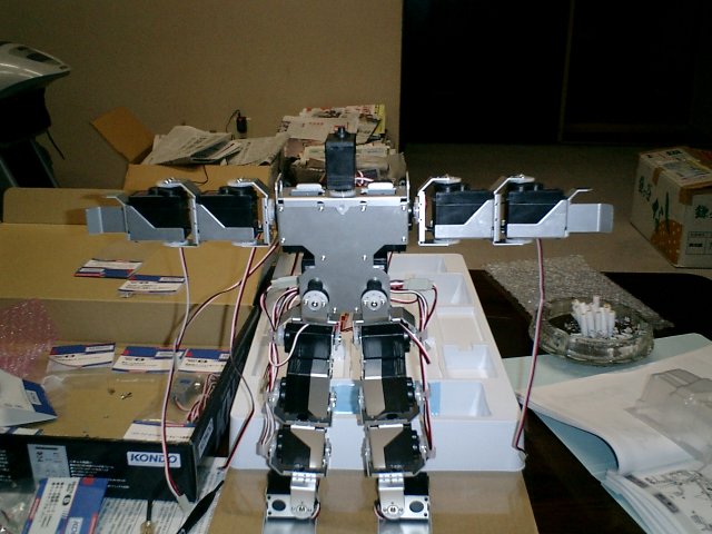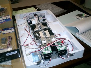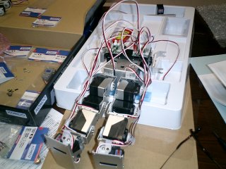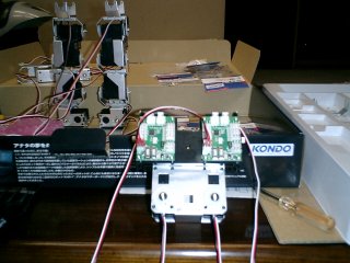 両足を組み立てた所です。 胴体に制御用基盤2枚を取り付けた所です。