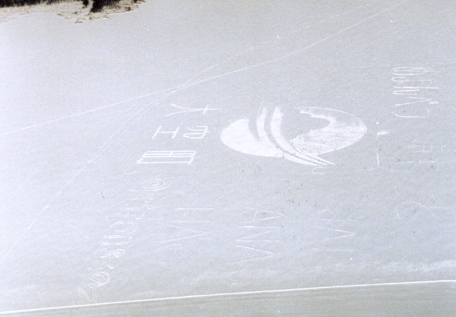 完成した翌日に、撮影した画像です。細かく踏んだ所が「黒く」成っていますが 昨夜の「風と雪」の為に、一部不鮮明になってきています。(残念!!)
